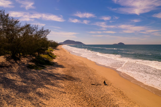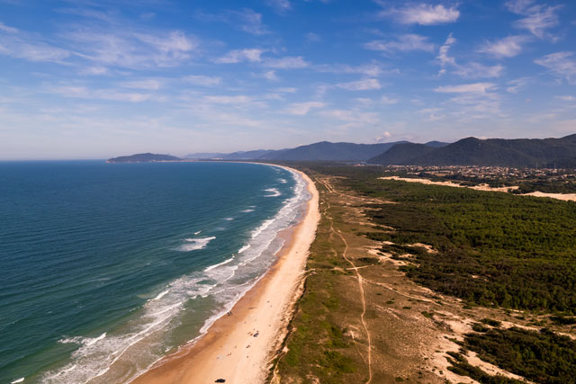 A Praia de Moçambique é uma das mais largas e selvagens de Florianópolis, localizada no norte da ilha. Com uma grande extensão de areia clara e mar aberto, ela é perfeita para quem deseja fugir da agitação das praias mais centrais e se conectar com a natureza de uma forma mais intensa. Com características rústicas e uma beleza incomparável, Moçambique é um paraíso escondido que conquista aqueles que buscam sossego e uma experiência mais tranquila e autêntica em Floripa.